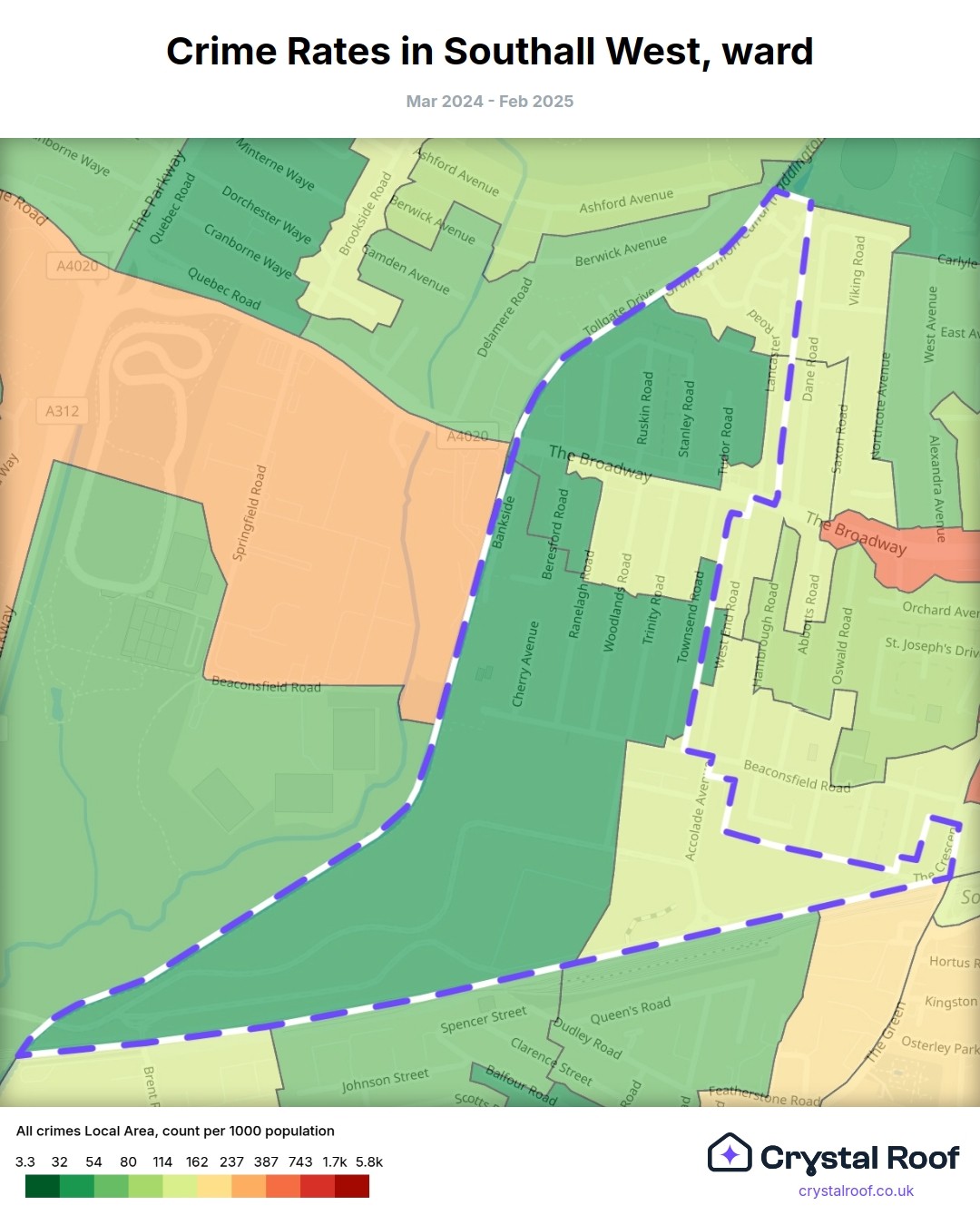 Southall West, (ward) includes areas with the following crime ratings (see map):