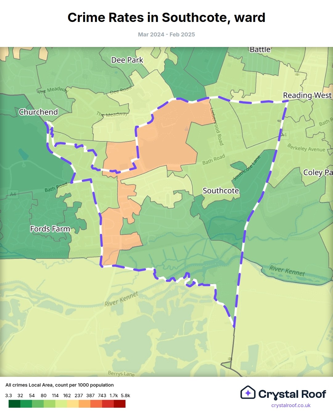 Southcote, (ward) includes areas with the following crime ratings (see map):