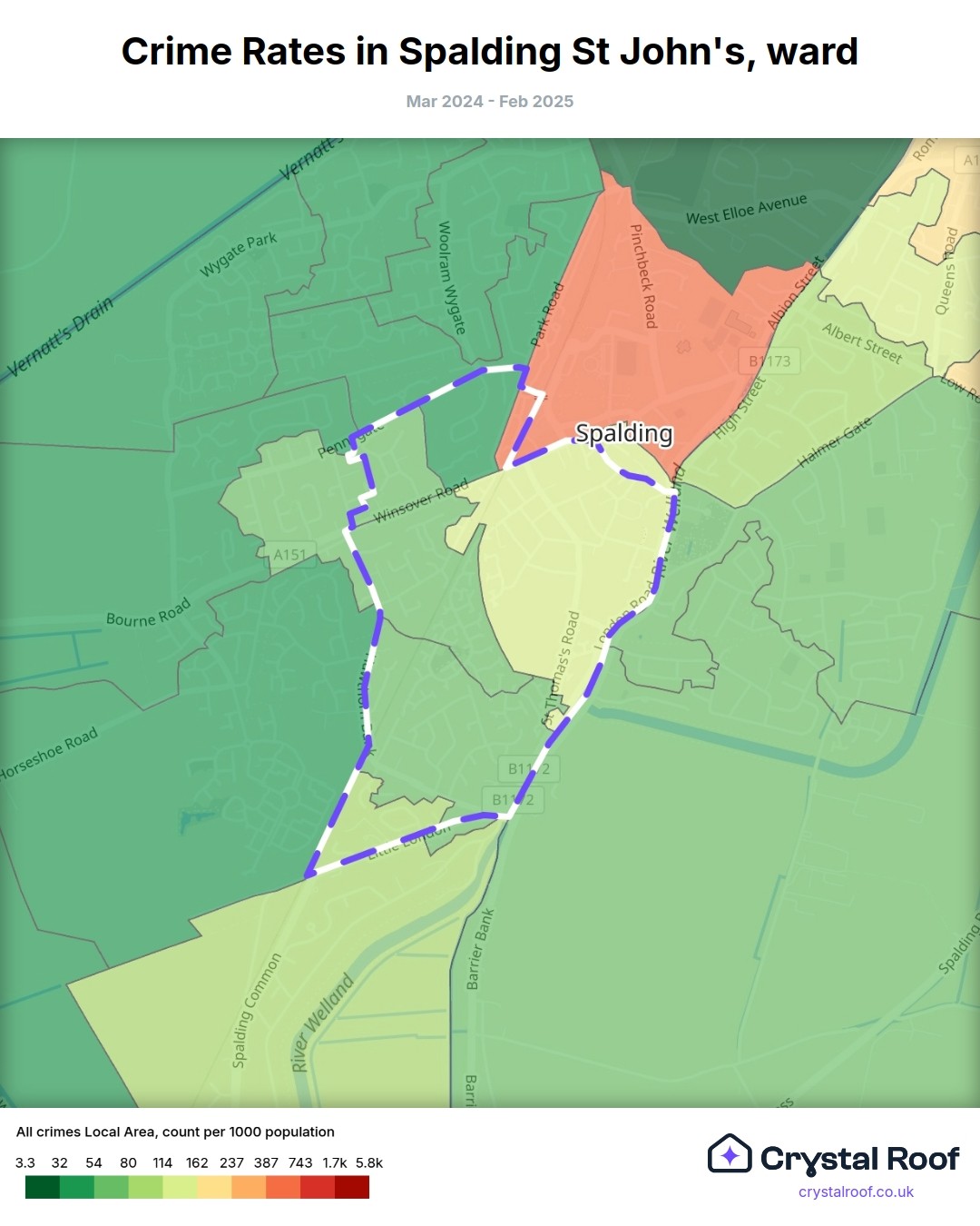 Spalding St John's, (ward) includes areas with the following crime ratings (see map):