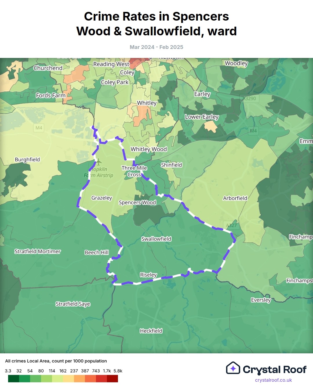 Spencers Wood & Swallowfield, (ward) includes areas with the following crime ratings (see map):