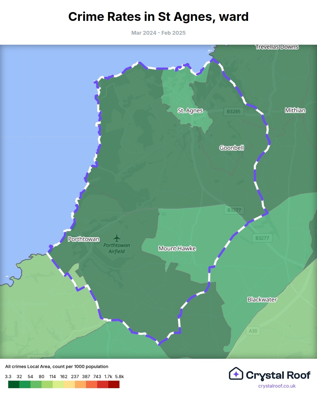St Agnes, (ward) includes areas with the following crime ratings (see map):