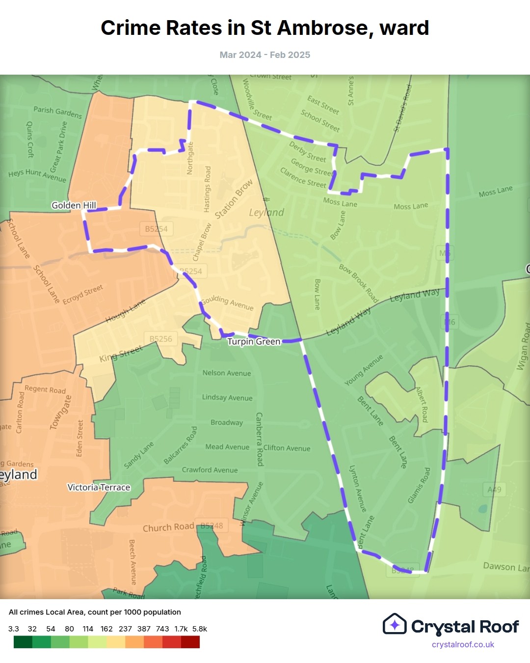 St Ambrose, (ward) includes areas with the following crime ratings (see map):