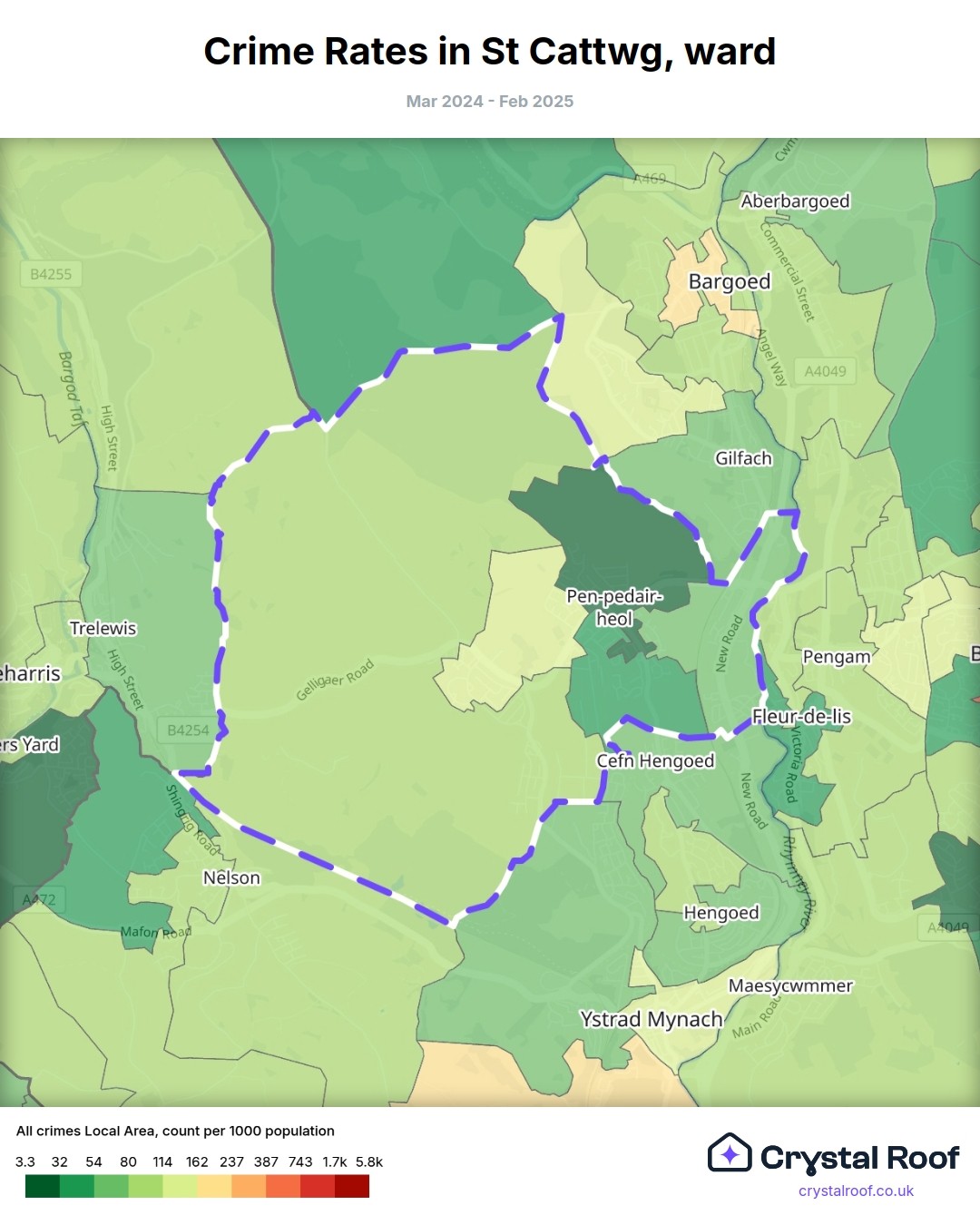 St Cattwg, (ward) includes areas with the following crime ratings (see map):