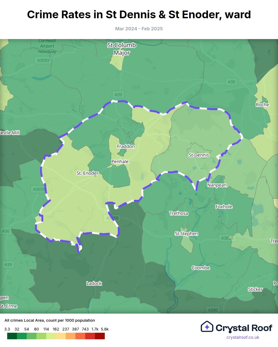 St Dennis & St Enoder, (ward) includes areas with the following crime ratings (see map):