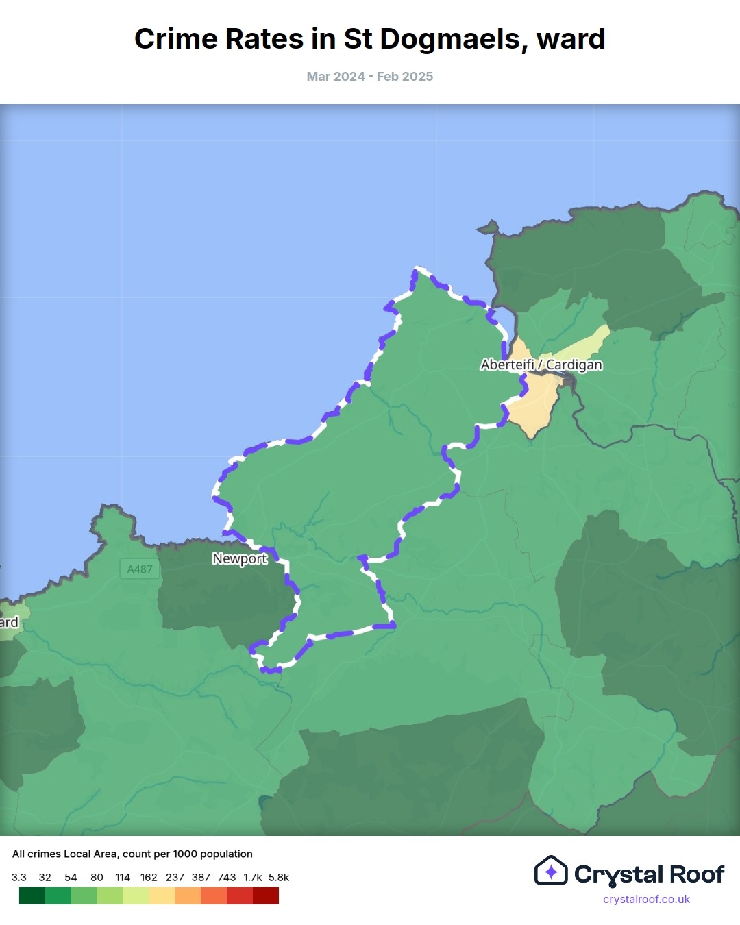 St Dogmaels, (ward) includes areas with the following crime ratings (see map):