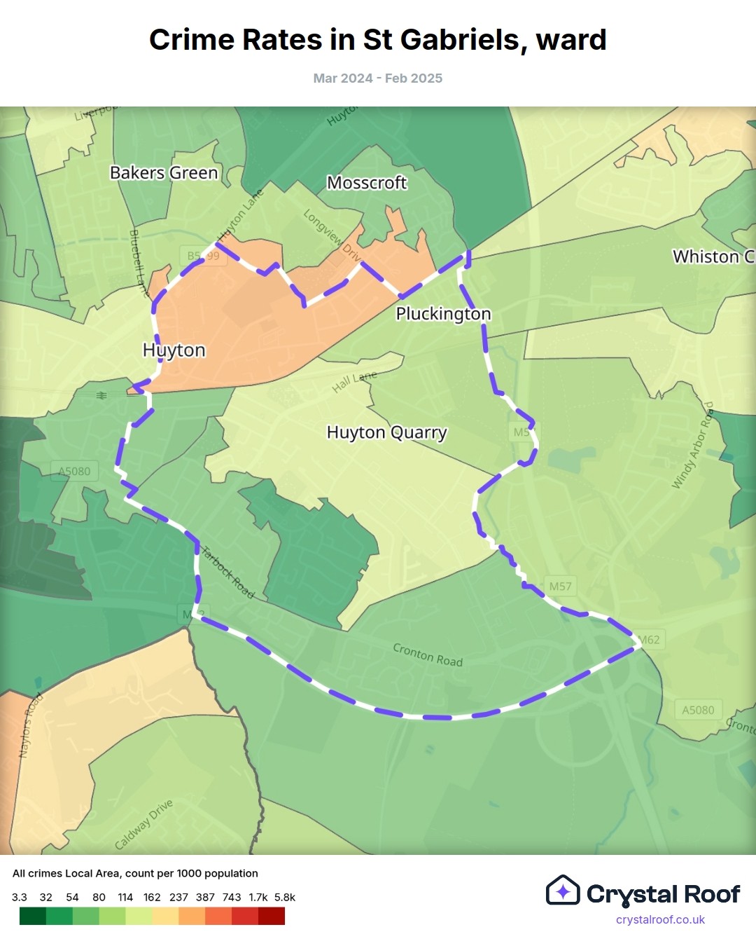 St Gabriels, (ward) includes areas with the following crime ratings (see map):