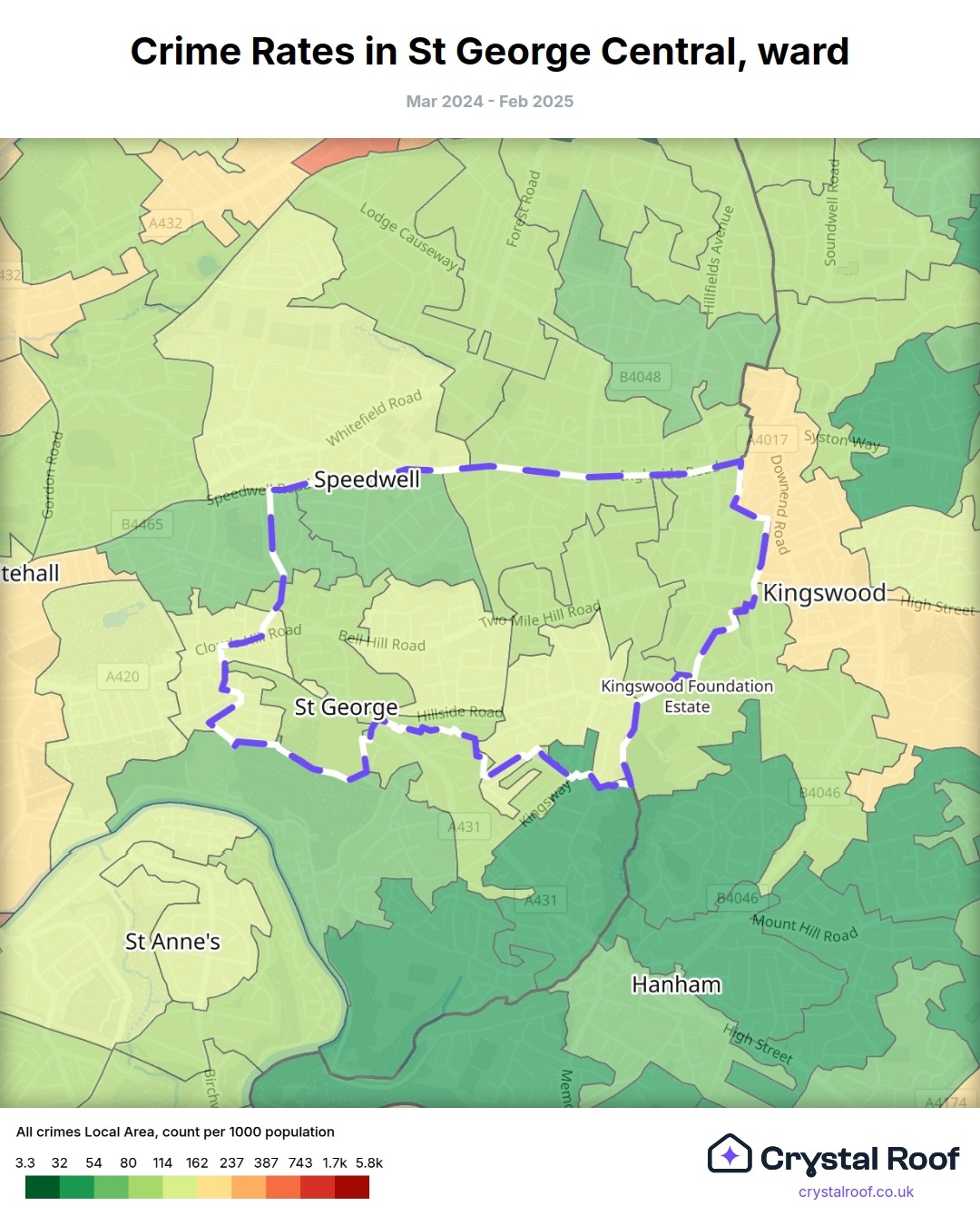 St George Central, (ward) includes areas with the following crime ratings (see map):