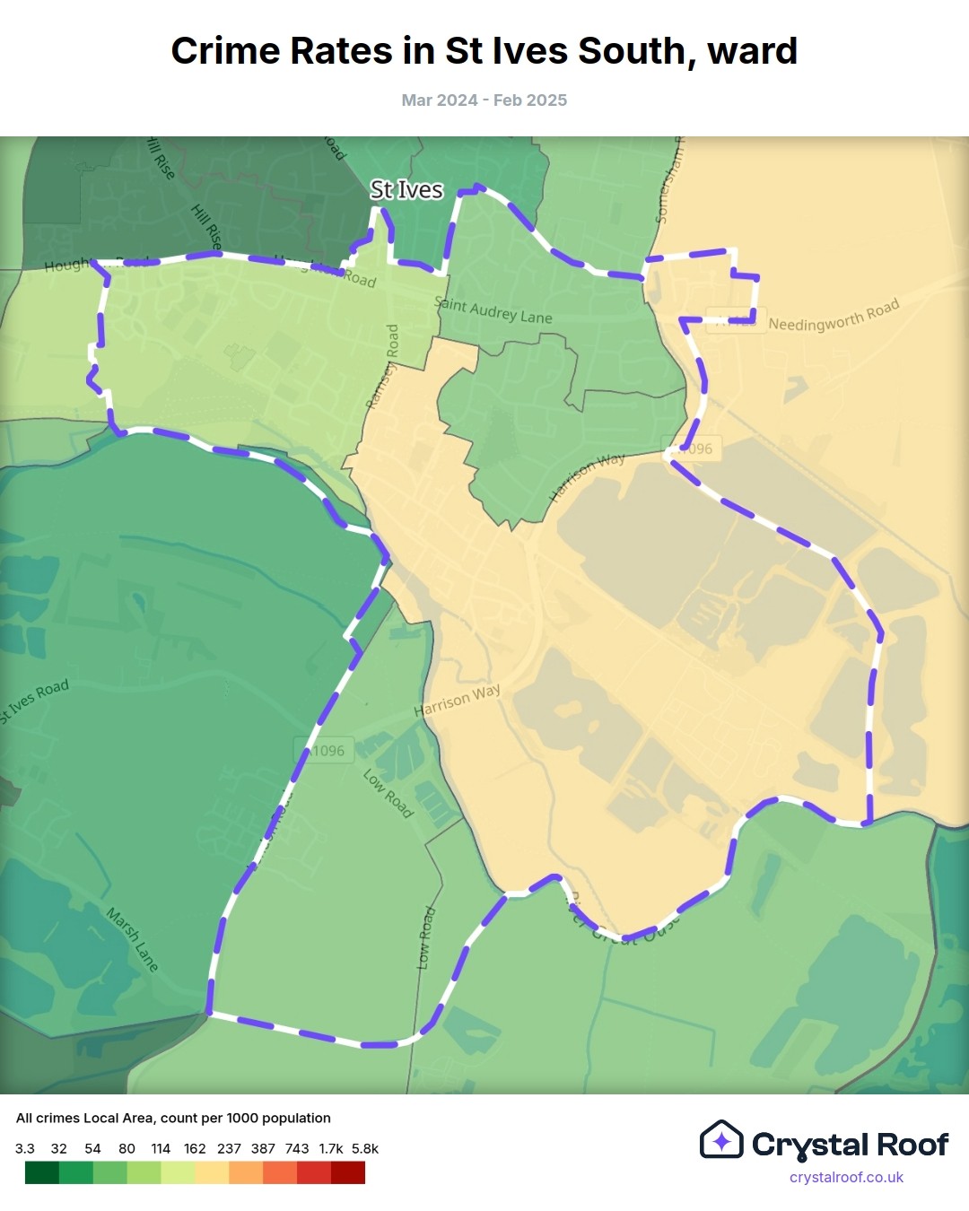St Ives South, (ward) includes areas with the following crime ratings (see map):
