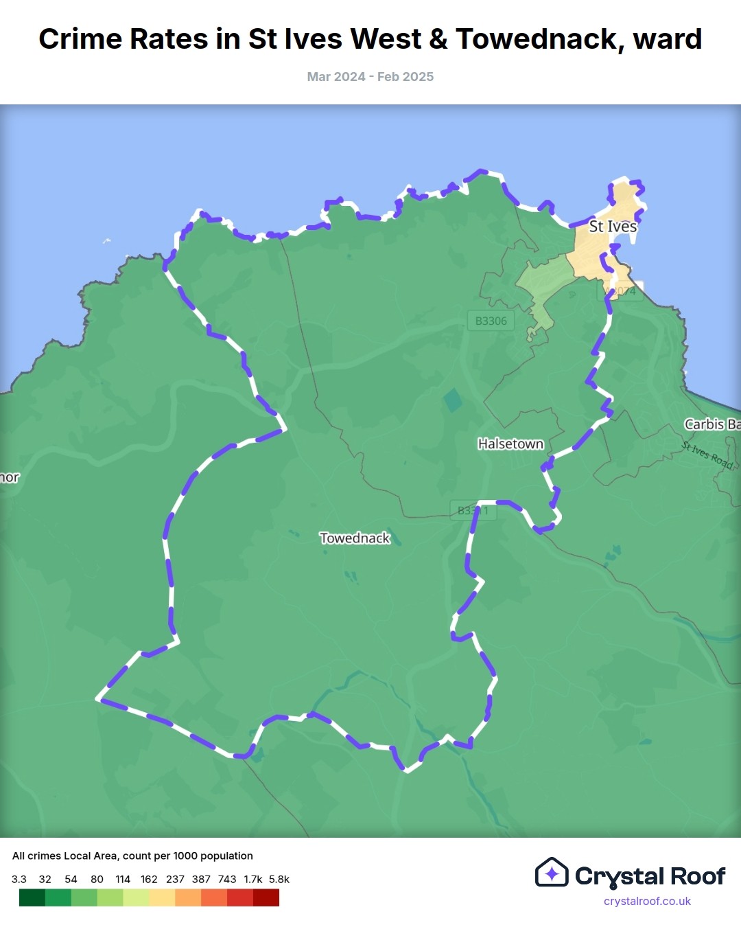 St Ives West & Towednack, (ward) includes areas with the following crime ratings (see map):