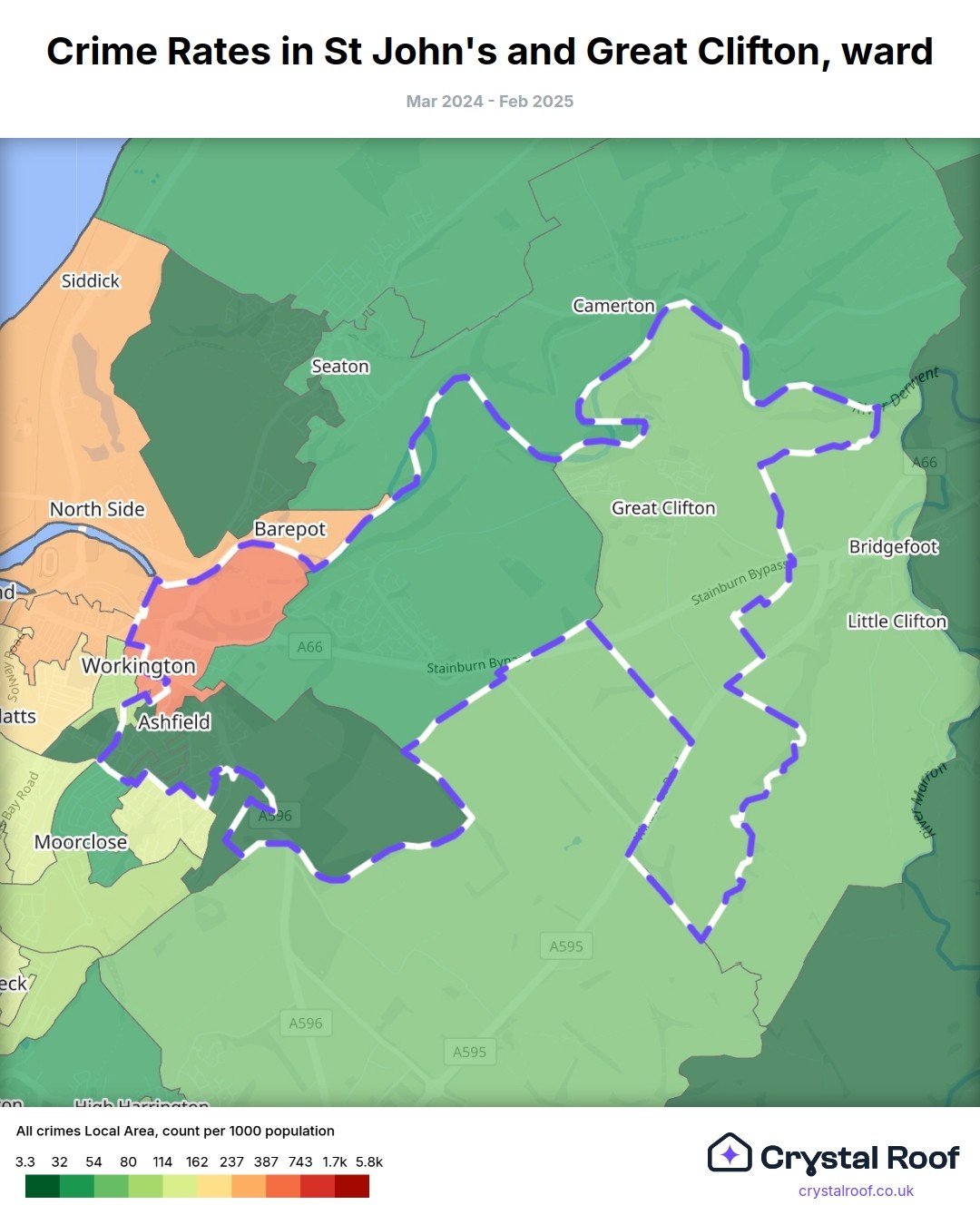 St John's and Great Clifton, (ward) includes areas with the following crime ratings (see map):