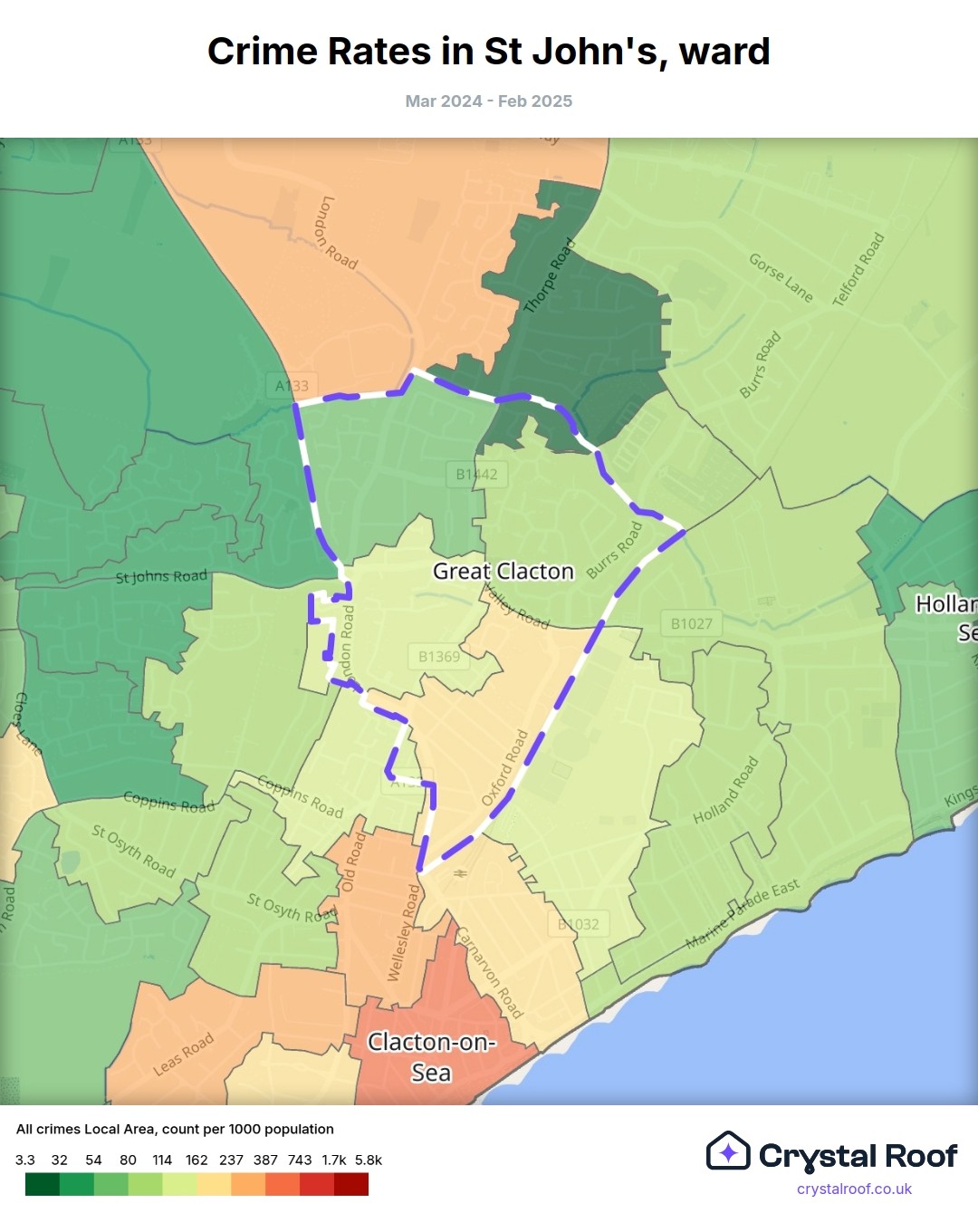 St John's, (ward) includes areas with the following crime ratings (see map):