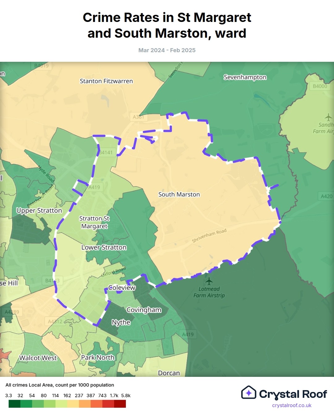 St Margaret and South Marston, (ward) includes areas with the following crime ratings (see map):
