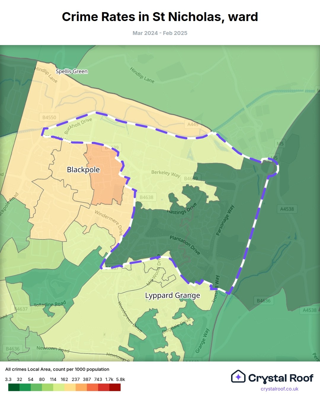 St Nicholas, (ward) includes areas with the following crime ratings (see map):