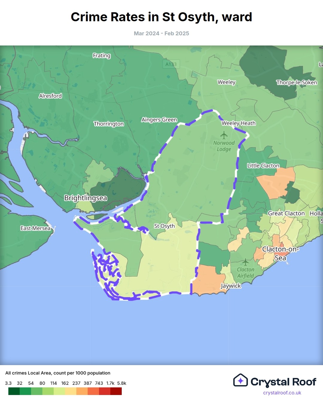 St Osyth, (ward) includes areas with the following crime ratings (see map):