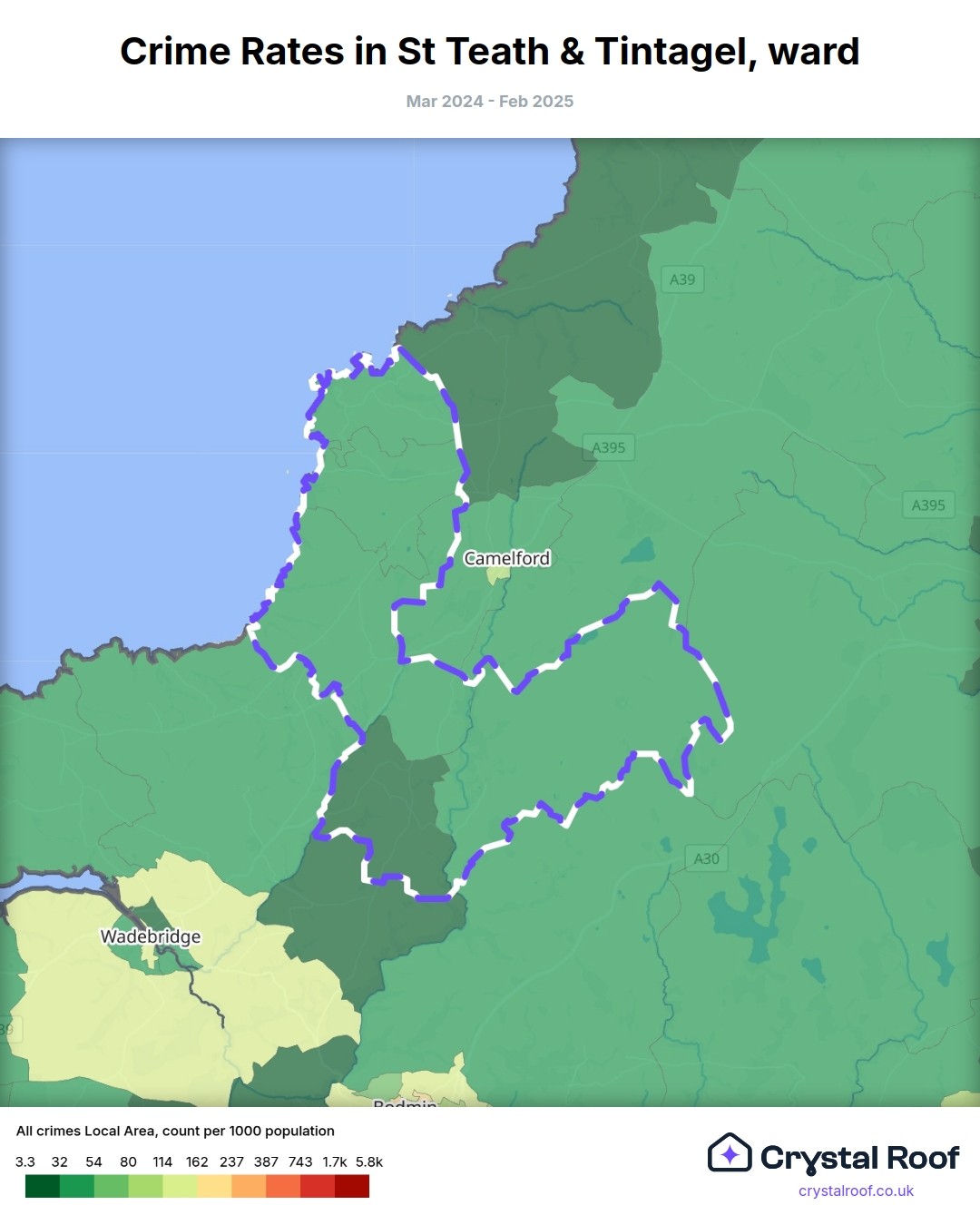 St Teath & Tintagel, (ward) includes areas with the following crime ratings (see map):
