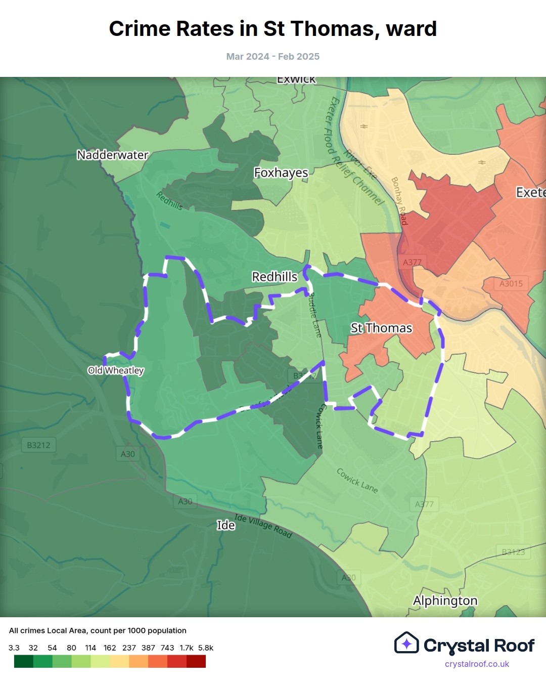 St Thomas, (ward) includes areas with the following crime ratings (see map):