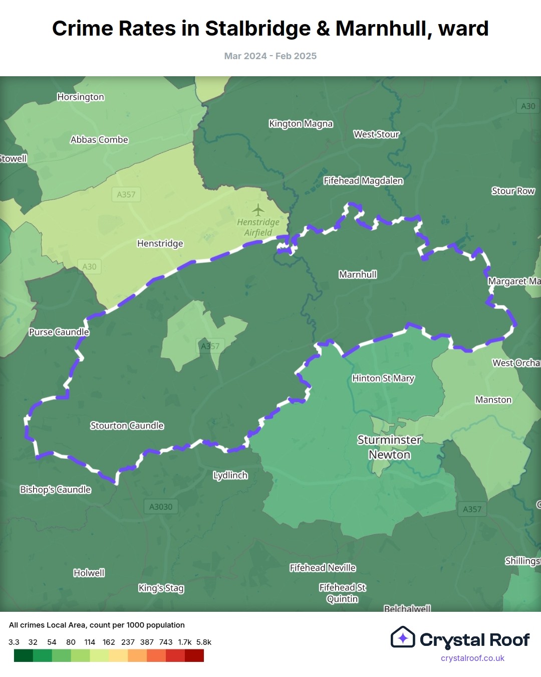 Stalbridge & Marnhull, (ward) includes areas with the following crime ratings (see map):