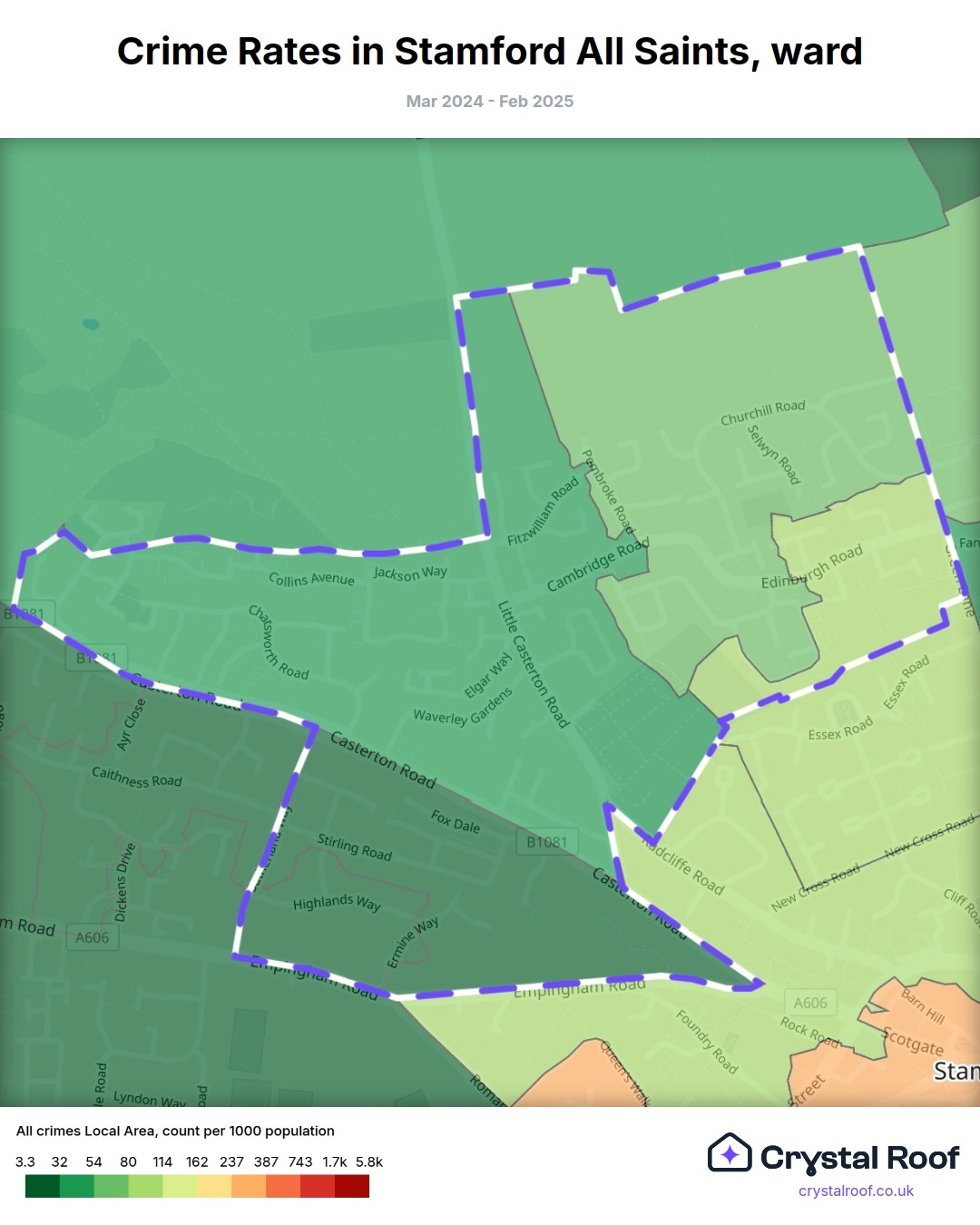 Stamford All Saints, (ward) includes areas with the following crime ratings (see map):