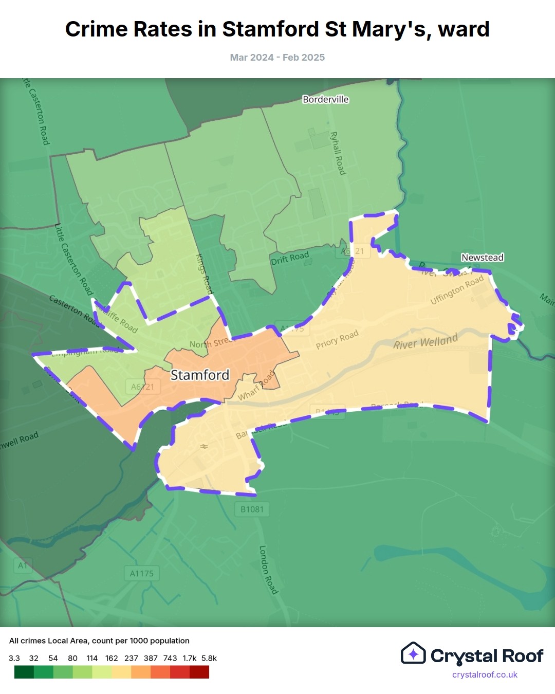 Stamford St Mary's, (ward) includes areas with the following crime ratings (see map):