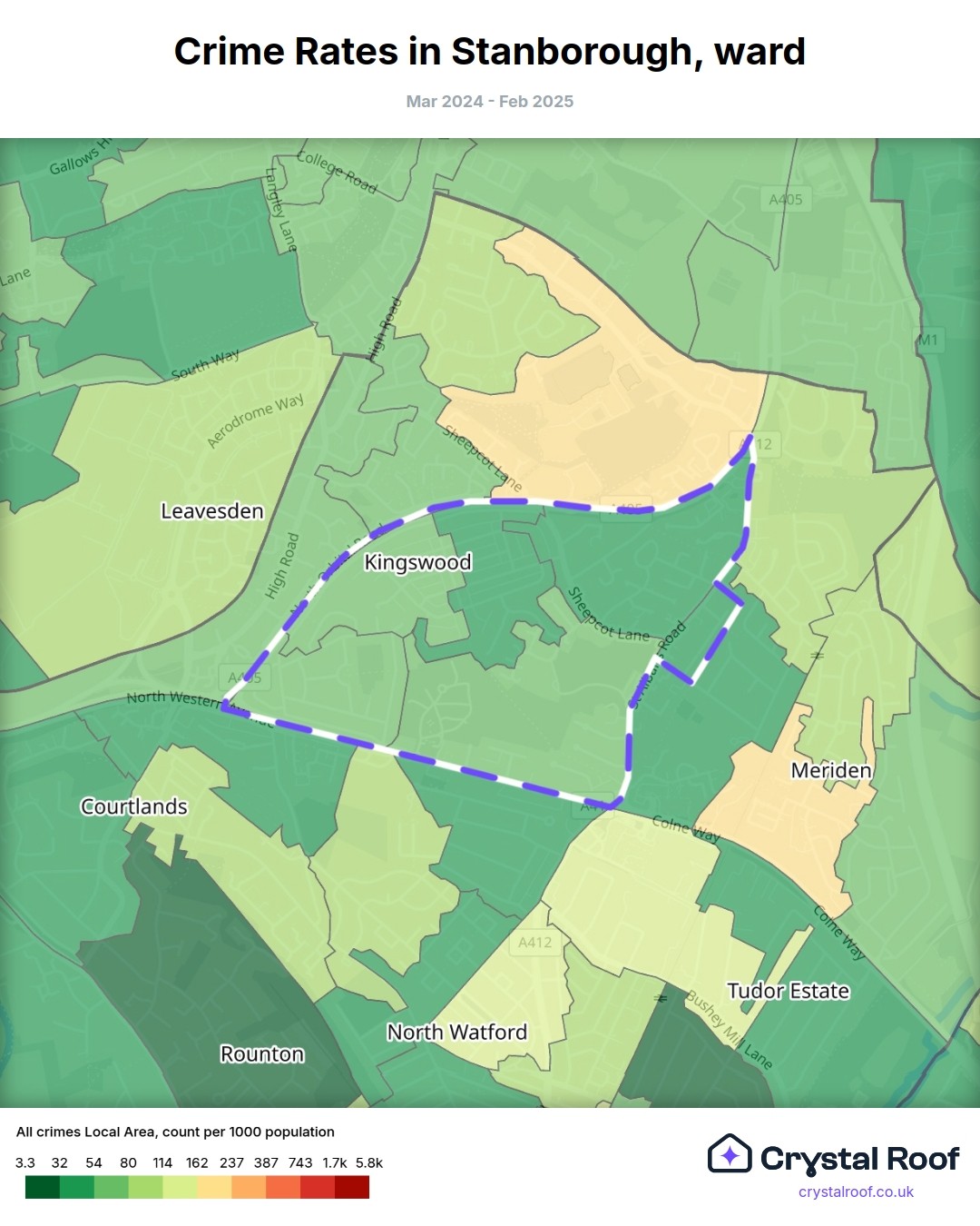 Stanborough, (ward) includes areas with the following crime ratings (see map):