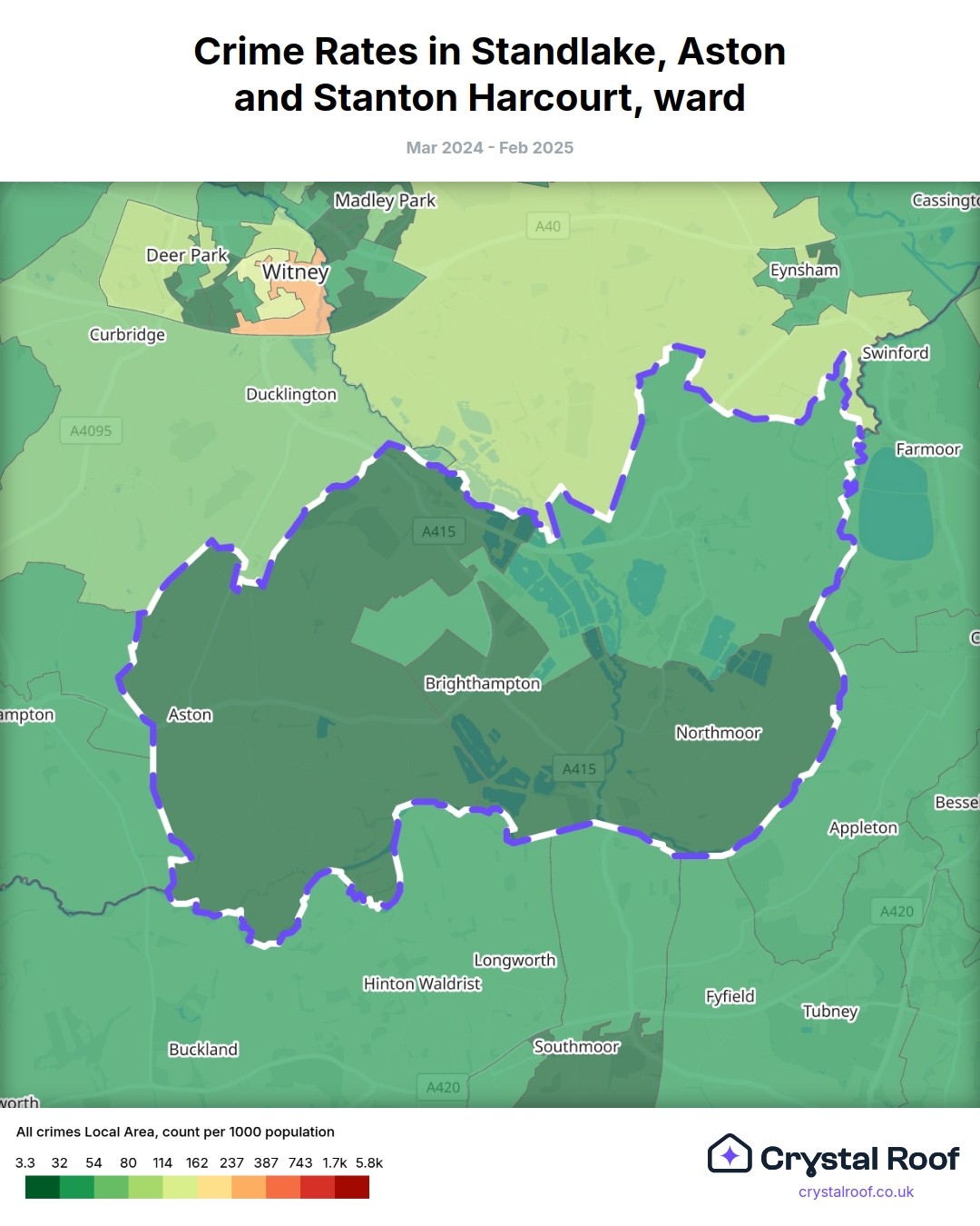 Standlake, Aston and Stanton Harcourt, (ward) includes areas with the following crime ratings (see map):