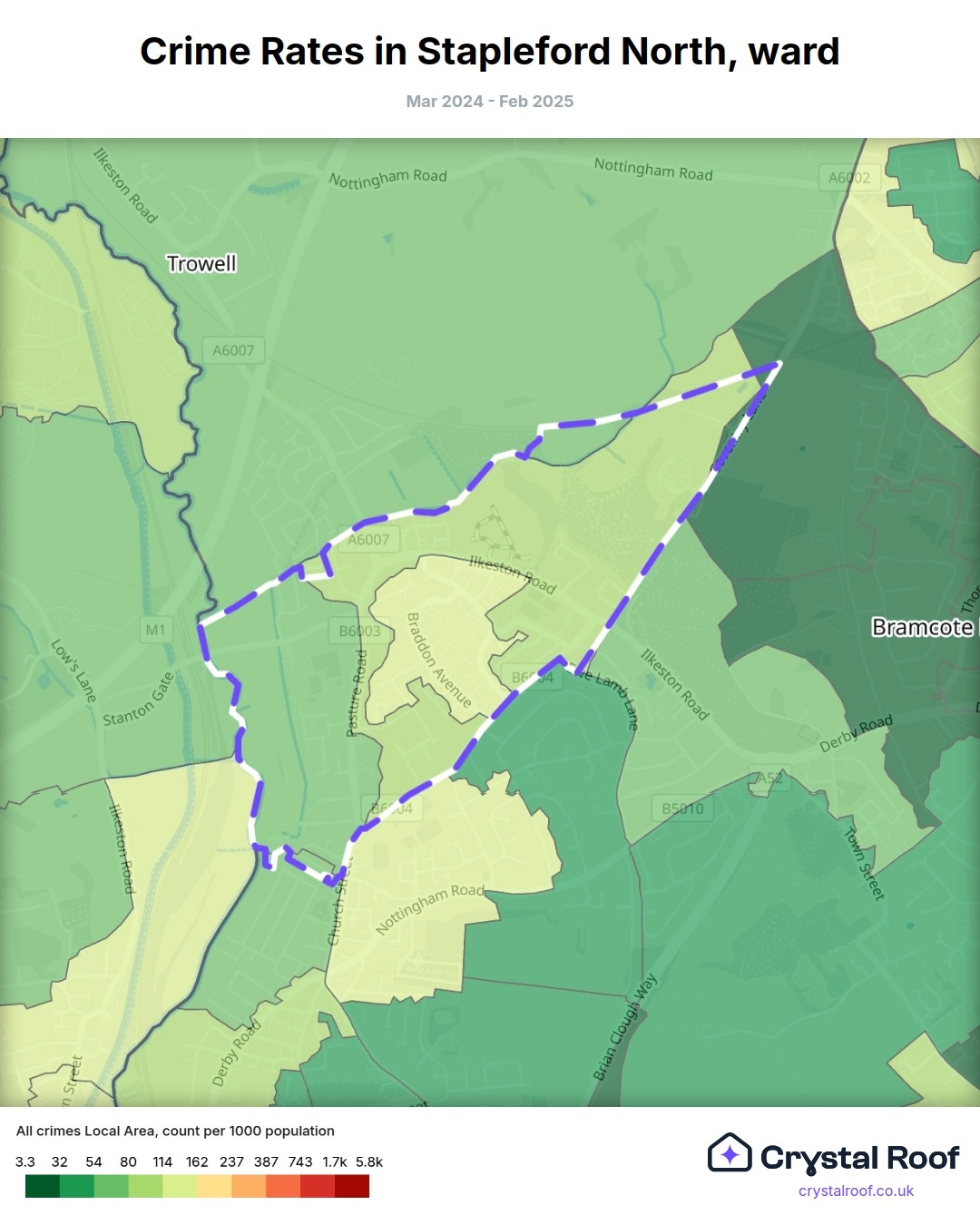 Stapleford North, (ward) includes areas with the following crime ratings (see map):