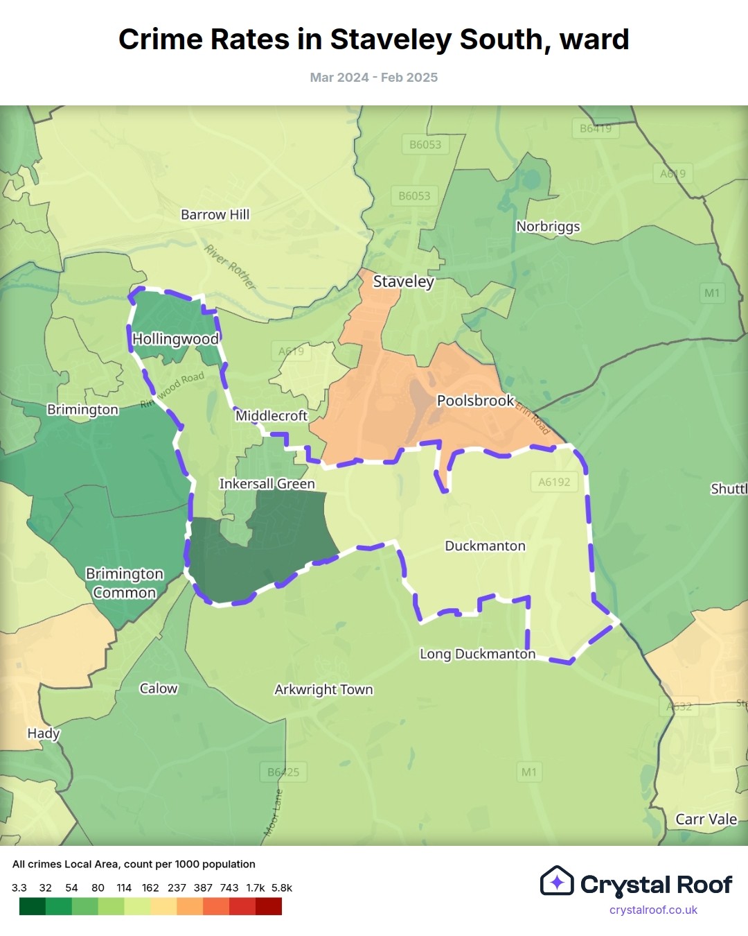 Staveley South, (ward) includes areas with the following crime ratings (see map):