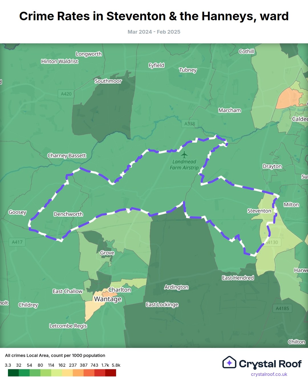Steventon & the Hanneys, (ward) includes areas with the following crime ratings (see map):