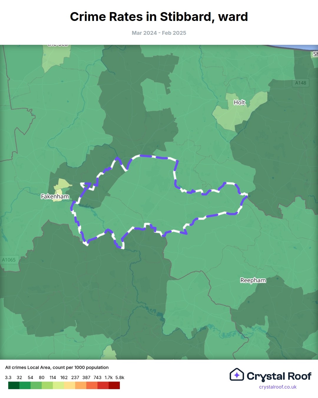 Stibbard, (ward) includes areas with the following crime ratings (see map):