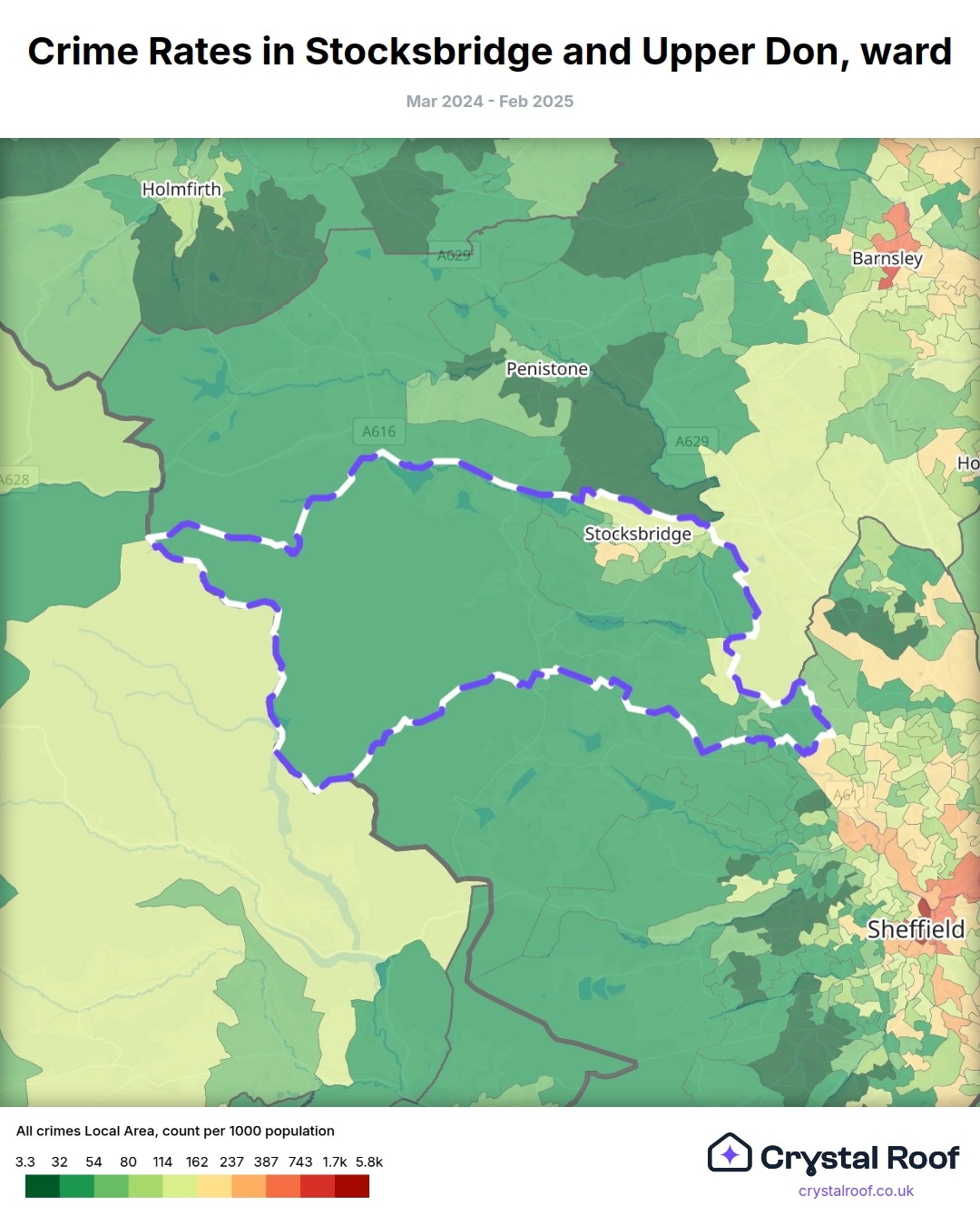 Stocksbridge and Upper Don, (ward) includes areas with the following crime ratings (see map):