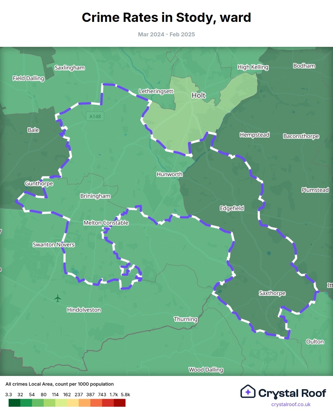 Stody, (ward) includes areas with the following crime ratings (see map):