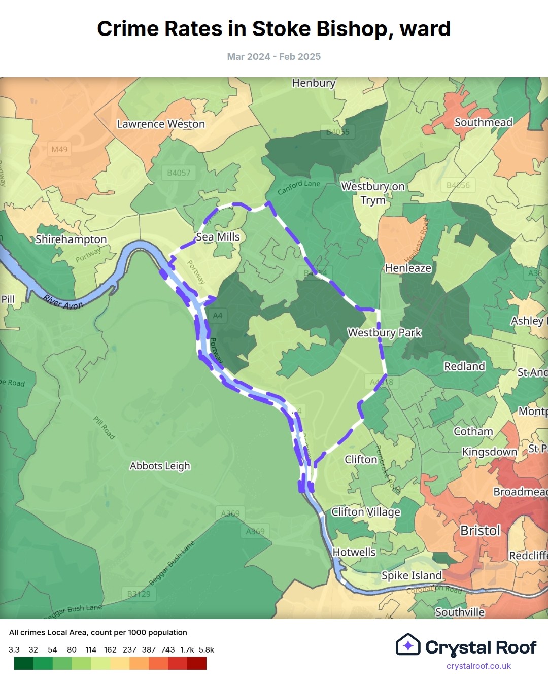 Stoke Bishop, (ward) includes areas with the following crime ratings (see map):