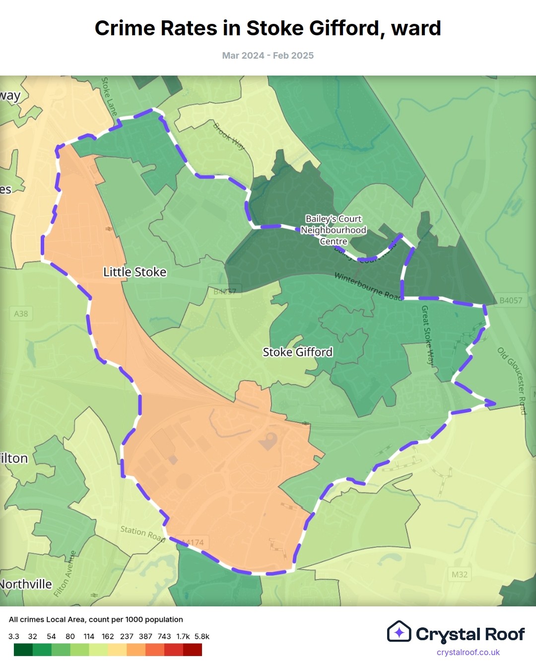 Stoke Gifford, (ward) includes areas with the following crime ratings (see map):