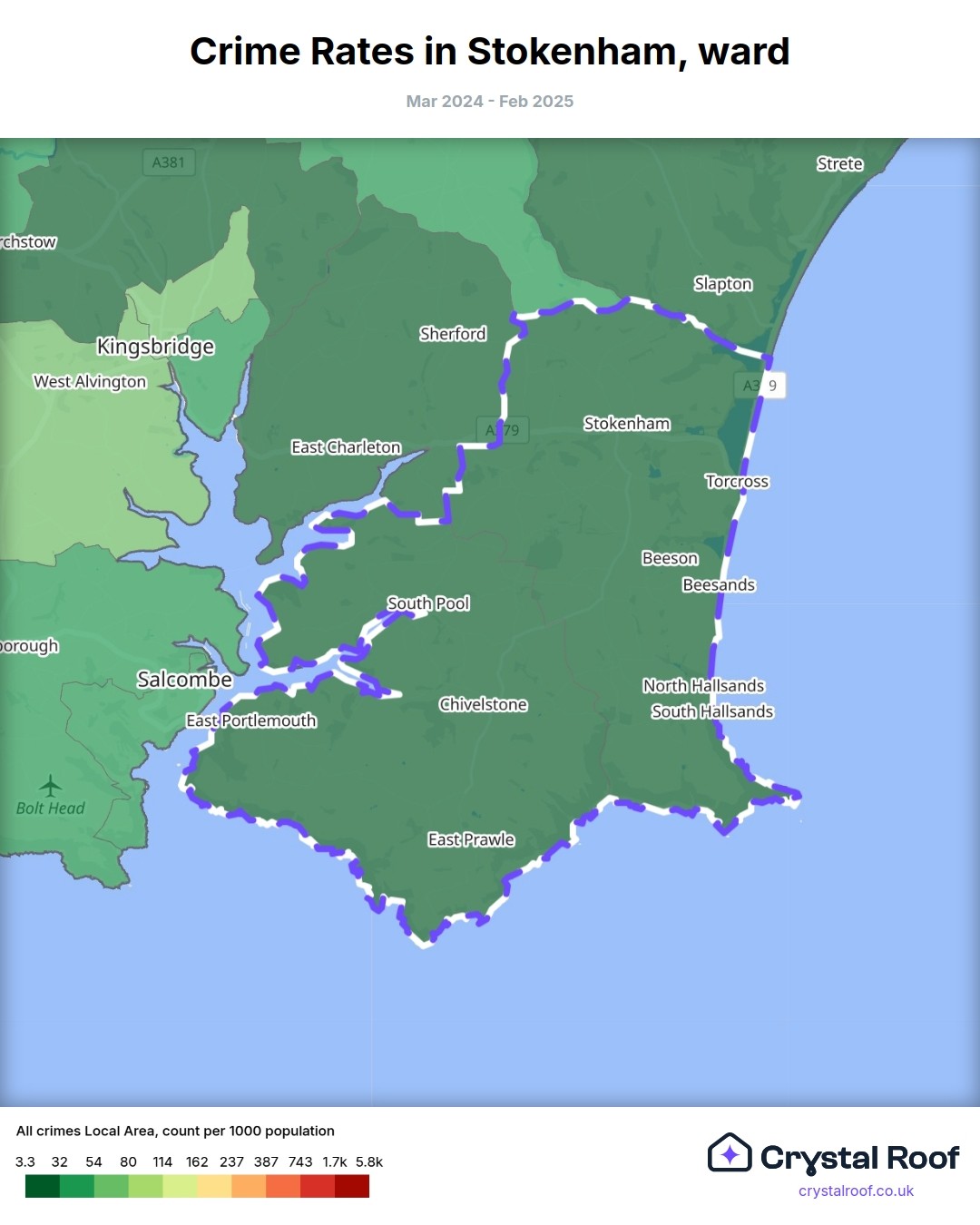 Stokenham, (ward) includes areas with the following crime ratings (see map):