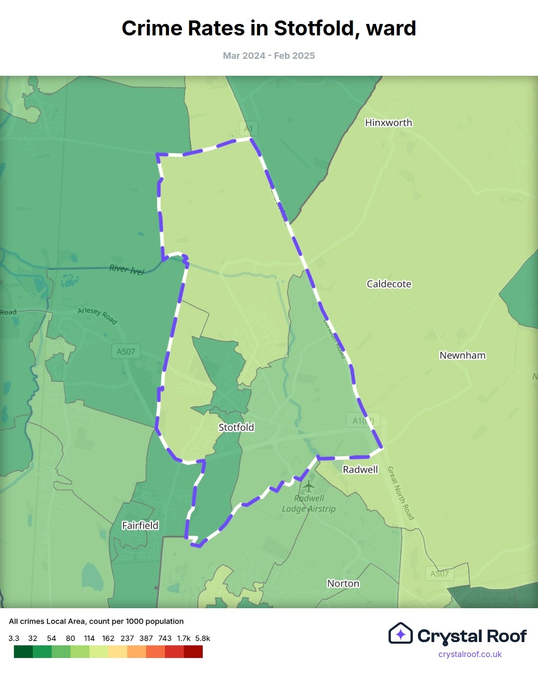 Stotfold, (ward) includes areas with the following crime ratings (see map):