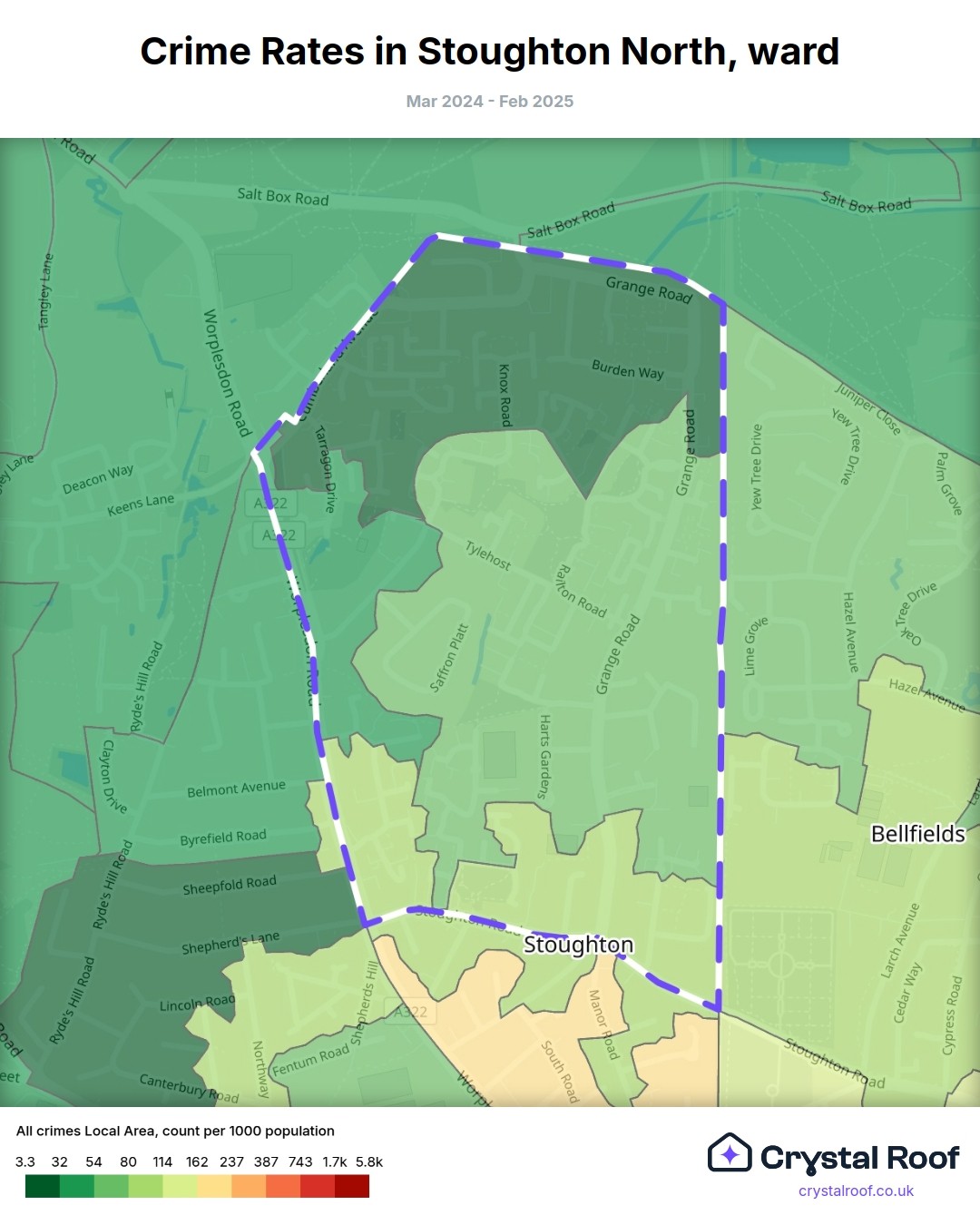 Stoughton North, (ward) includes areas with the following crime ratings (see map):