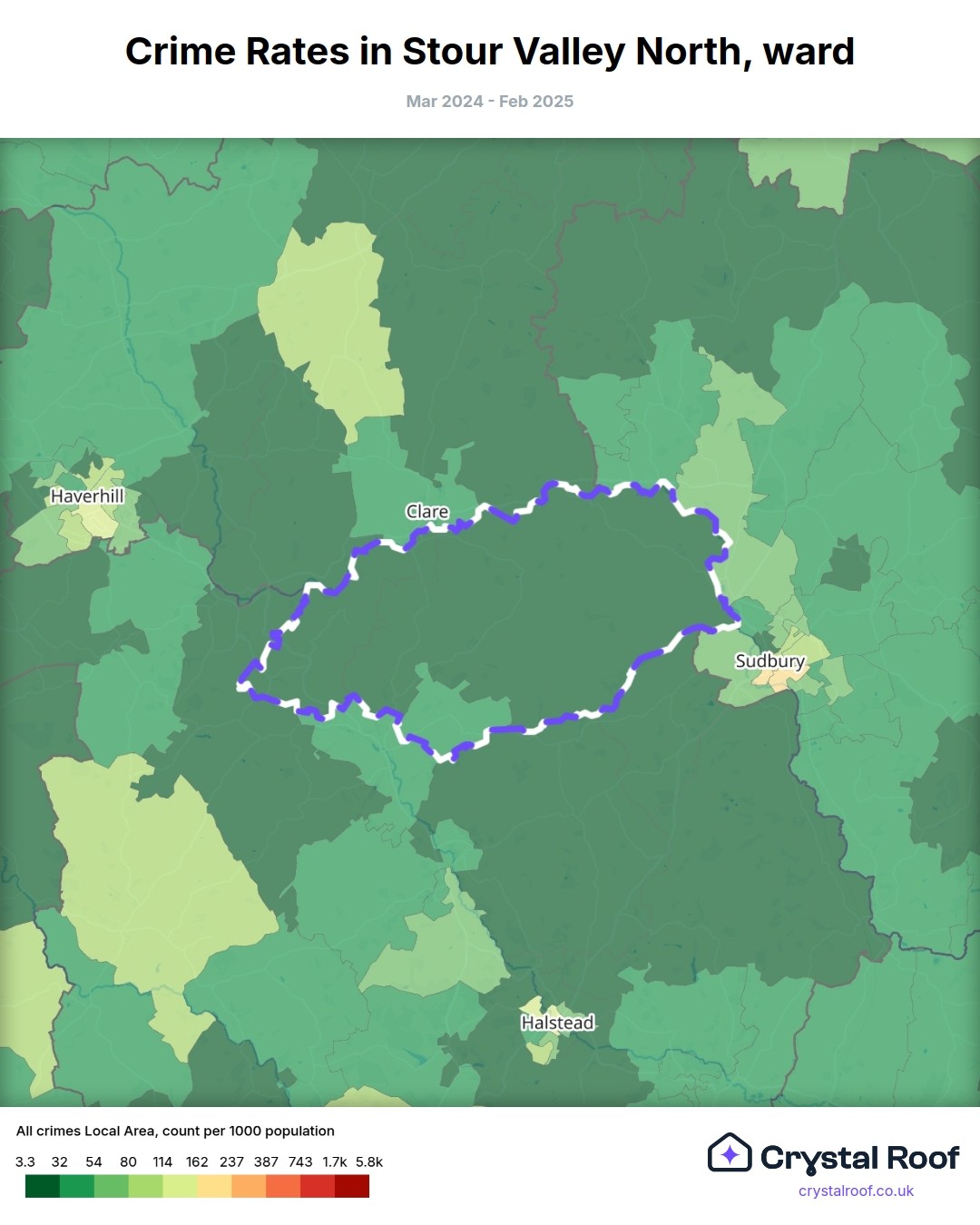 Stour Valley North, (ward) includes areas with the following crime ratings (see map):