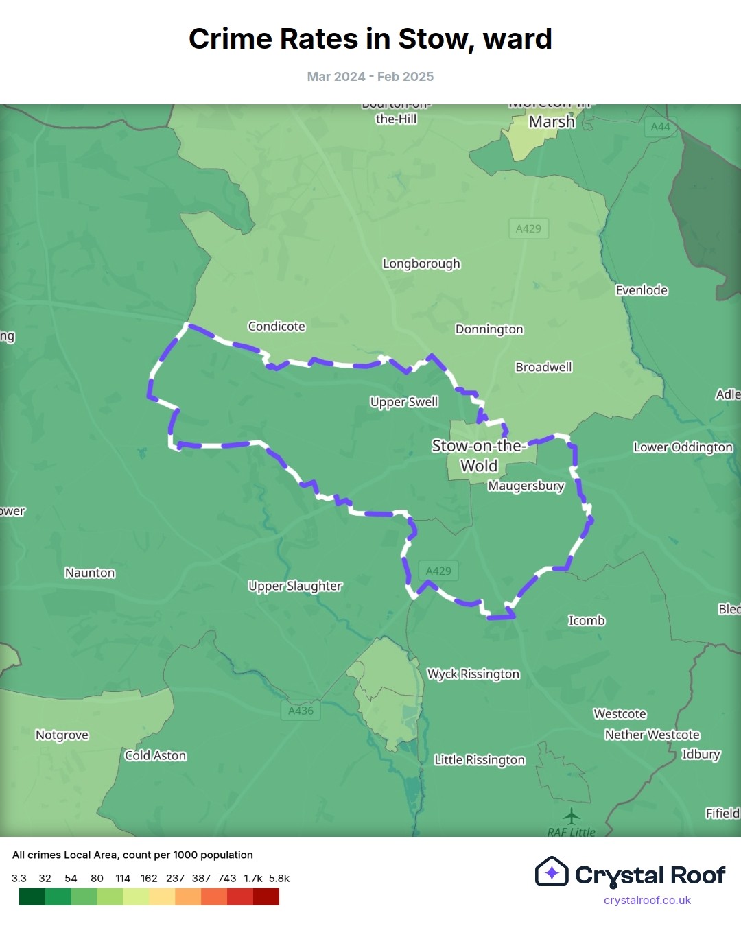 Stow, (ward) includes areas with the following crime ratings (see map):