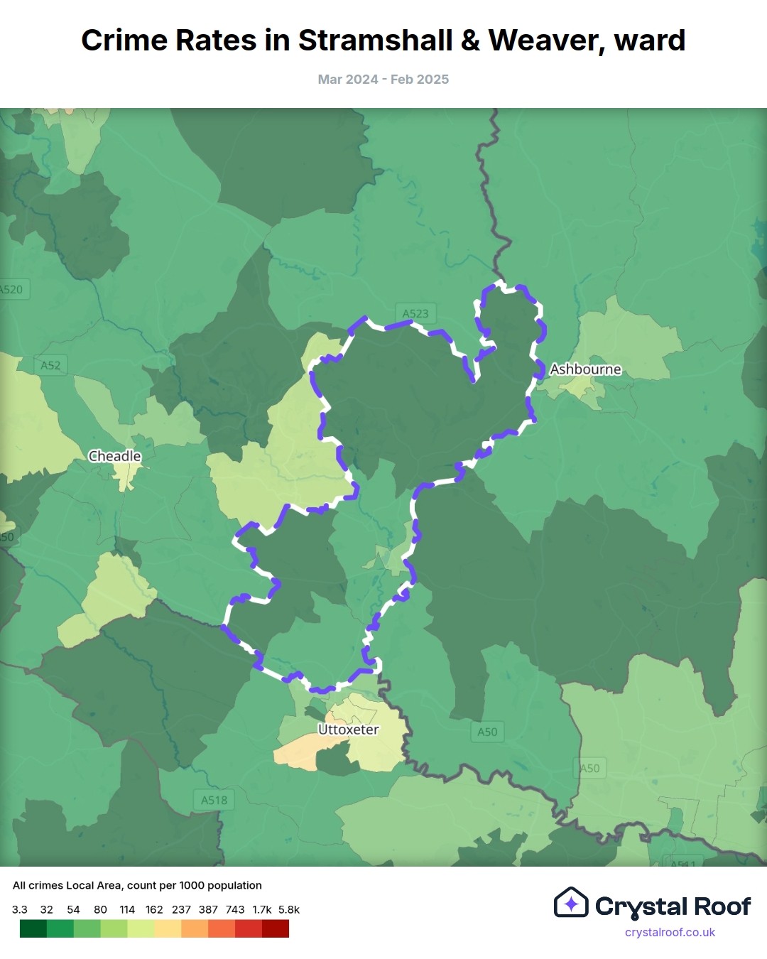 Stramshall & Weaver, (ward) includes areas with the following crime ratings (see map):