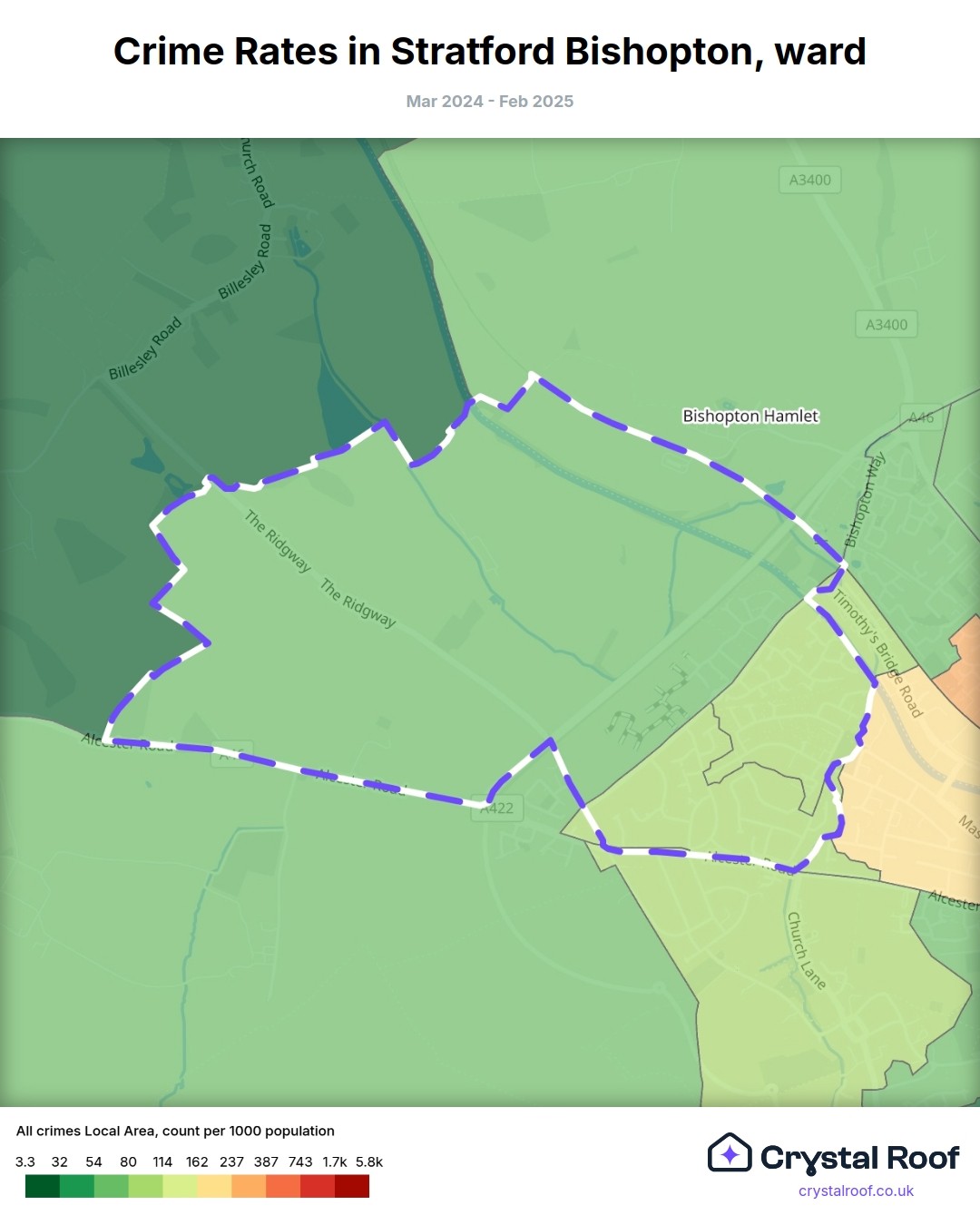 Stratford Bishopton, (ward) includes areas with the following crime ratings (see map):