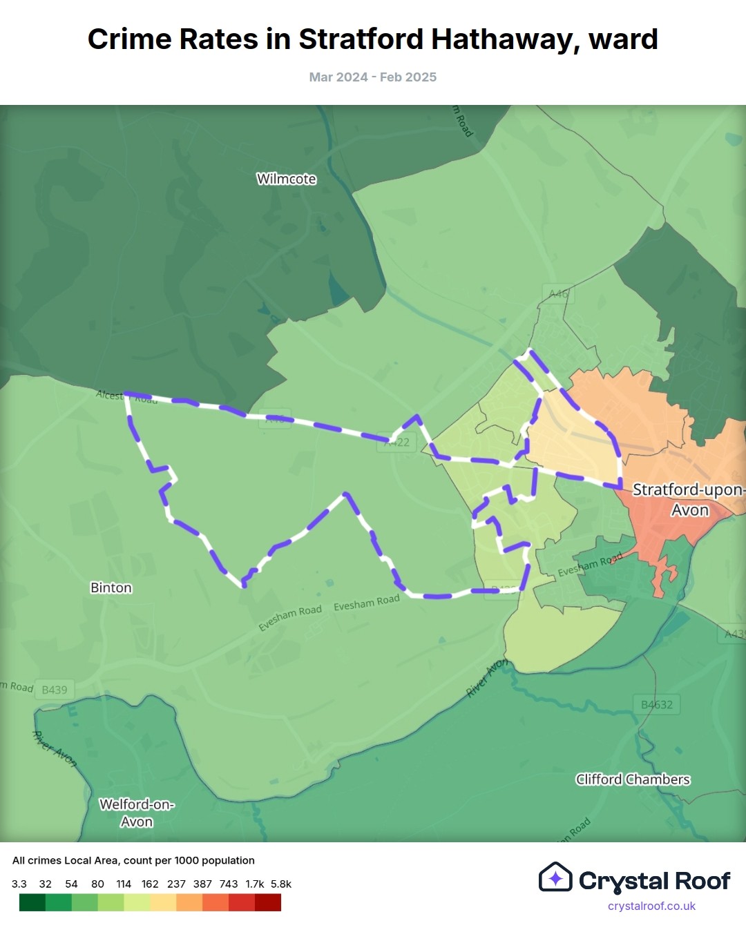 Stratford Hathaway, (ward) includes areas with the following crime ratings (see map):