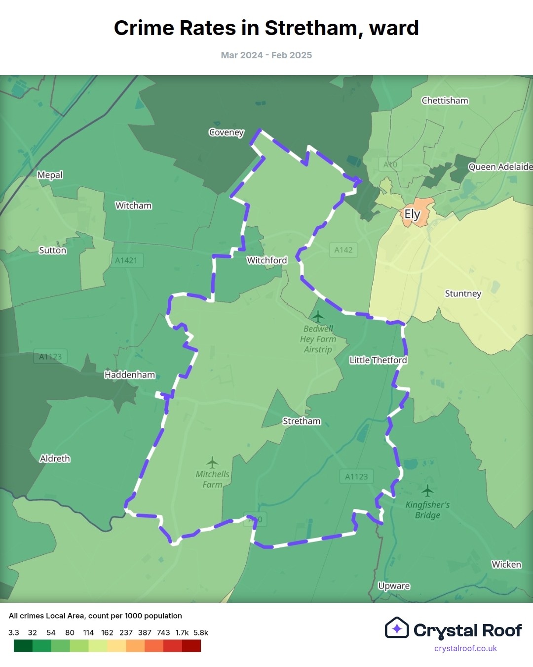 Stretham, (ward) includes areas with the following crime ratings (see map):