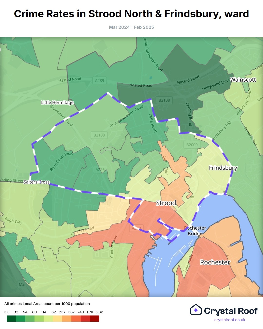 Strood North & Frindsbury, (ward) includes areas with the following crime ratings (see map):