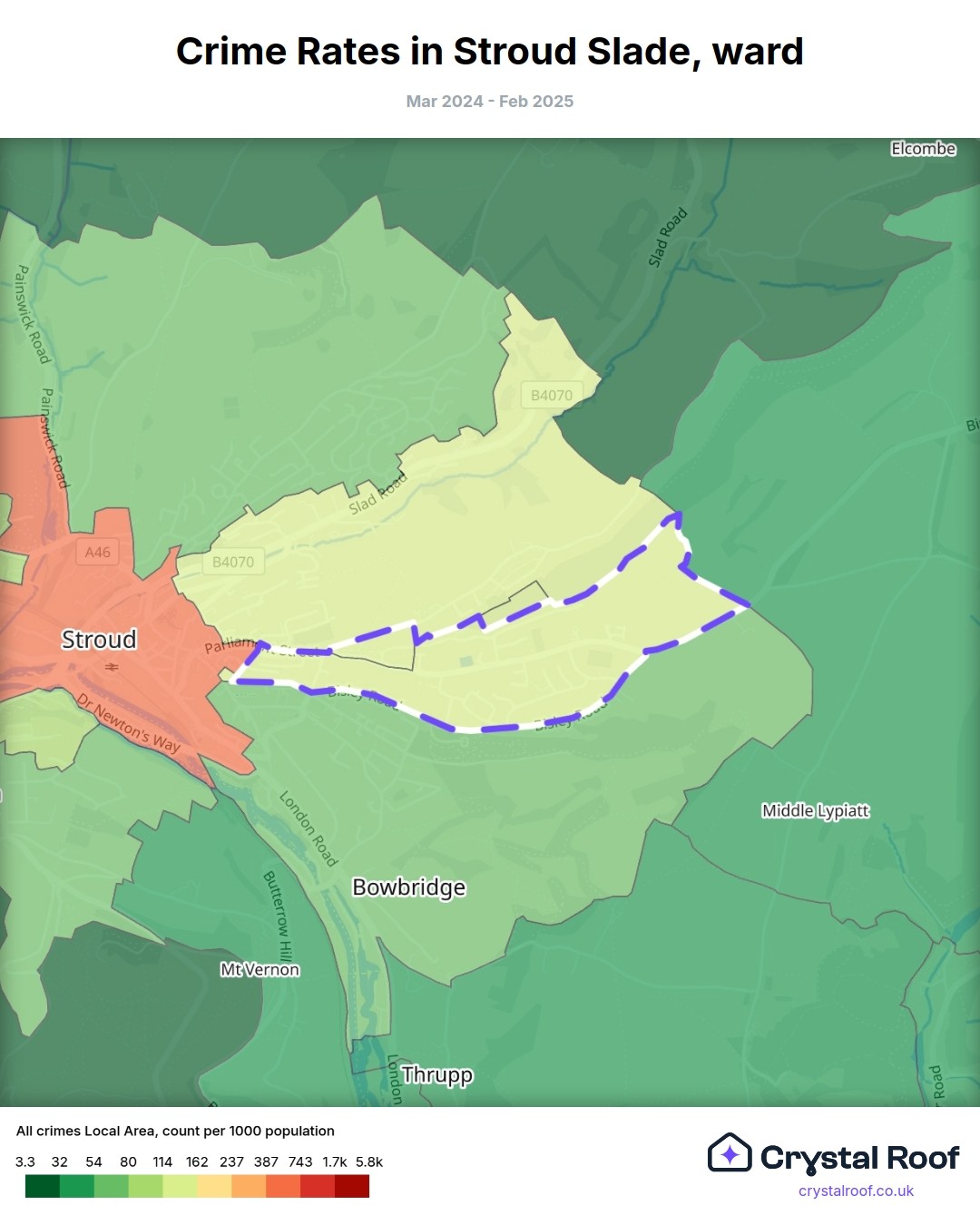 Stroud Slade, (ward) includes areas with the following crime ratings (see map):