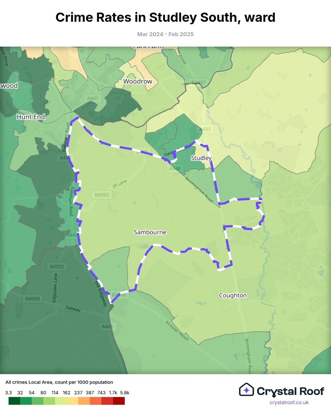 Studley South, (ward) includes areas with the following crime ratings (see map):