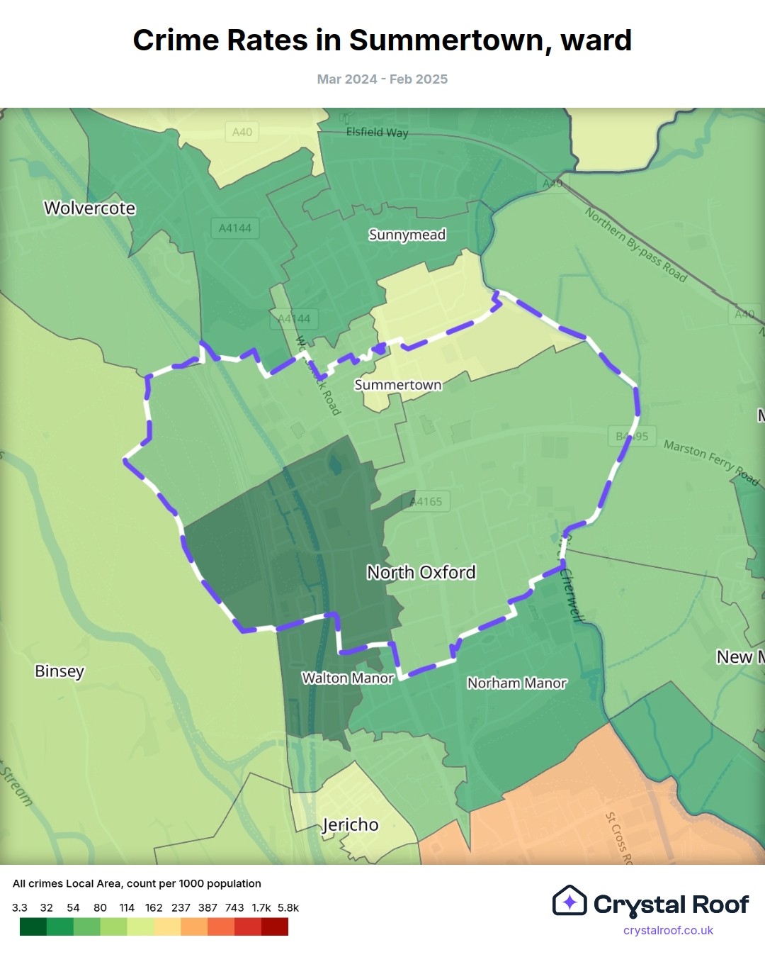 Summertown, (ward) includes areas with the following crime ratings (see map):