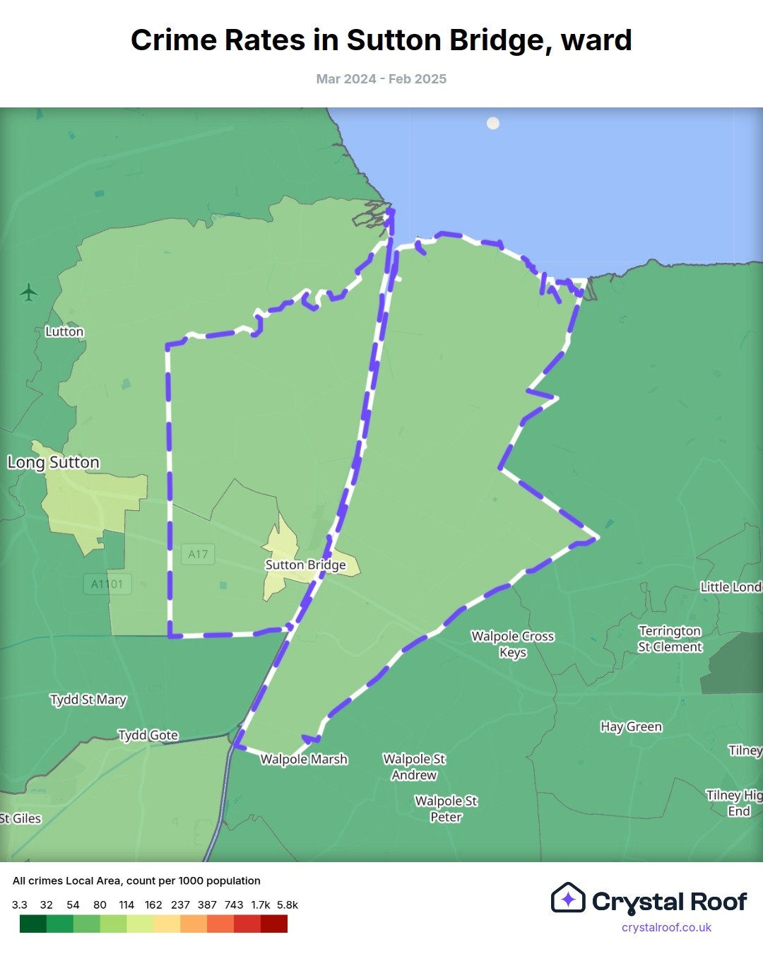 Sutton Bridge, (ward) includes areas with the following crime ratings (see map):
