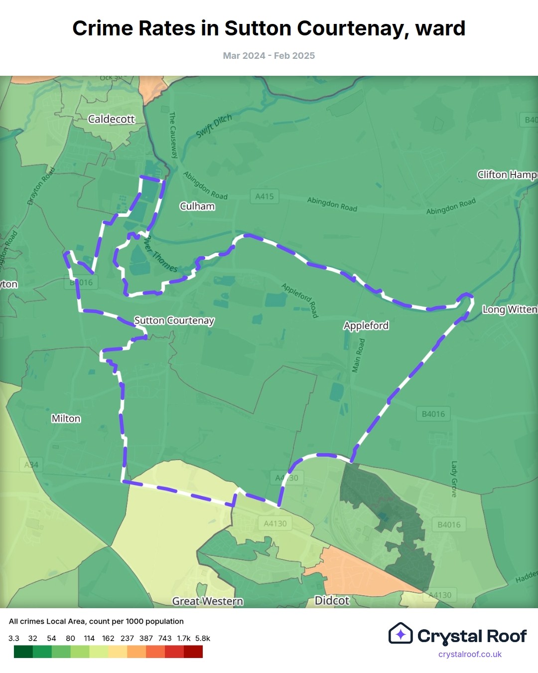 Sutton Courtenay, (ward) includes areas with the following crime ratings (see map):