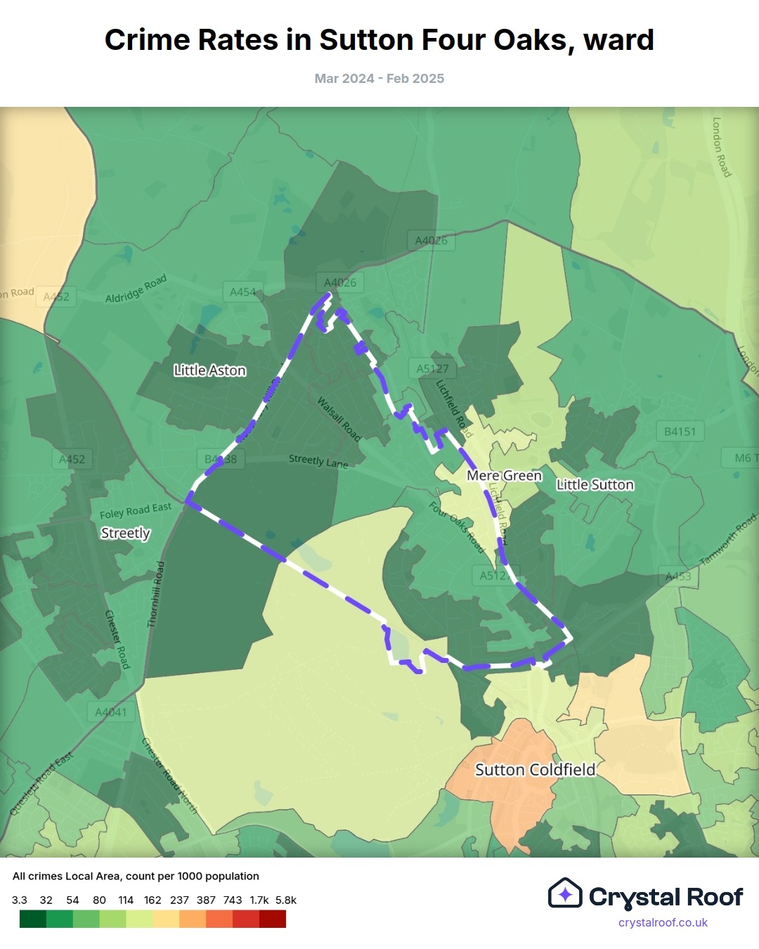 Sutton Four Oaks, (ward) includes areas with the following crime ratings (see map):