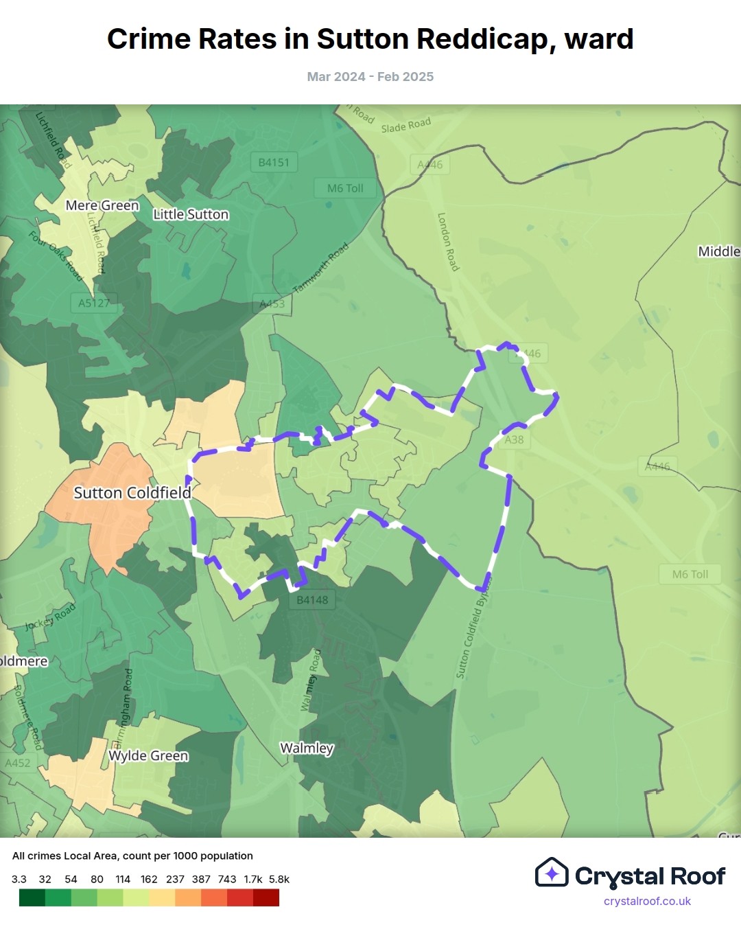 Sutton Reddicap, (ward) includes areas with the following crime ratings (see map):